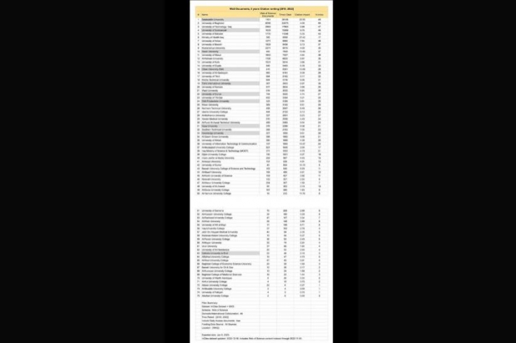 وبينت "هذا التقرير اعتمد على البحوث المقدمة في الجامعة خلال السنوات الخمس الأخيرة من 2018 ولغاية 2022".