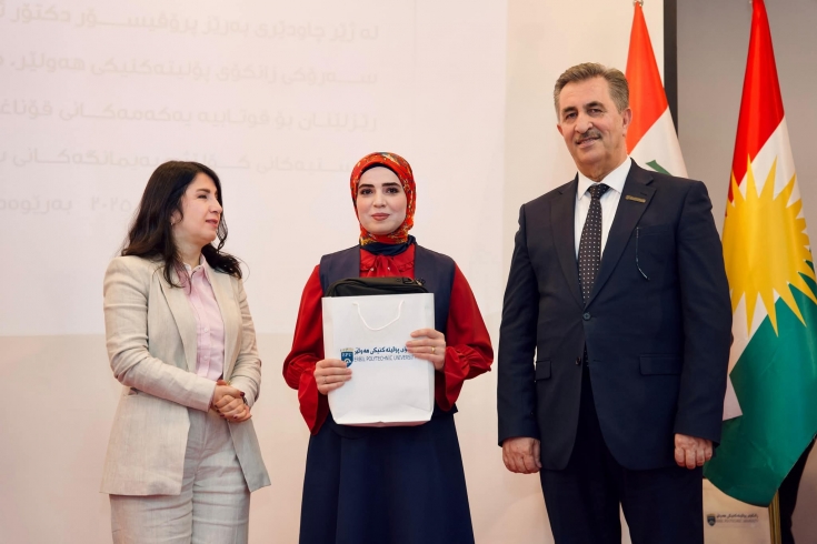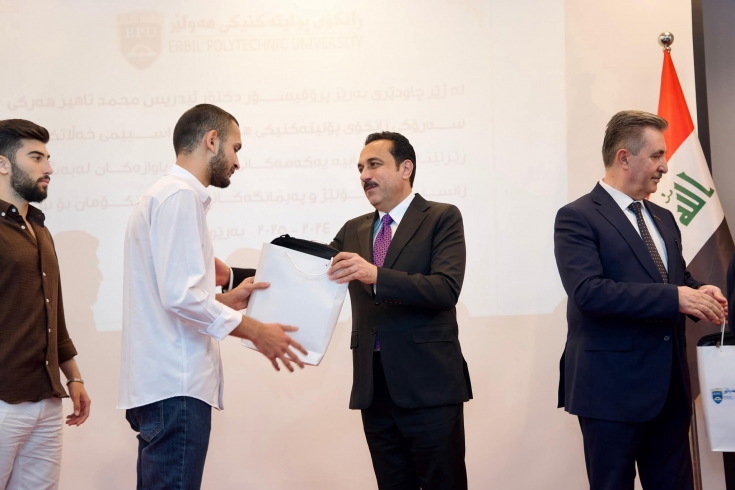 ئەمڕۆ سێشەممە 2025.11.4، بە ئامادەبوونی ئومێد خۆشناو، پارێزگاری هەولێر و د.چنار سەعد عەبدوڵڵا، یاریدەدەری بەرپرسی مەکتەبی ڕێکخستنی هەولێری پارتی و د.زانا مەلا خالید، بەرپرسی لقی2 و د.ئیدریس محمەد، سەرۆکی زانکۆ و بەشێکی دیکە لە ڕاگر و مامۆستایانی زانکۆ و قوتابیان، لە ڕێورەسمێكدا ڕێزلێنان پێشكەش بە قوتابیە یەکەمەکانی قۆناغە جیاوازەکانی بەشە زانستیەکانی کولێژ و پەیمانگاکانی سەر بە زانکۆی پۆلیتەکنیکی هەولێر بۆ ساڵی خوێندنی 2024-2025 كرا.