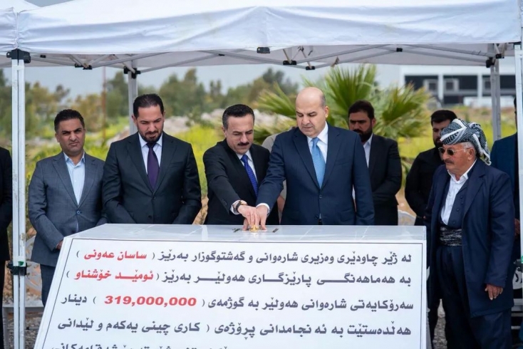 ئەمڕۆ دووشەممە 2026.4.20، ساسان عەونی، وەزیری شارەوانی و ئومێد خۆشناو، پارێزگاری هەولێر، بە ئامادەبوونی کارزان عەبدولهادی، سەرۆکی شارەوانی هەولێر و محەمەد یوسف، بەڕێوەبەری شارەوانی سێ و ژمارەیەک لە ئەندازیاران و سەرپەرشتیارانی پڕۆژەکە، بەردی بناغەی پڕۆژەی ( فەرشکردنی چینی یەکەمی تێکەڵە، لێدانی کێربستۆن و فەرشی چینی دووەم )یان بۆ شەقامەکانی قەرەبووی ڕەشکینان لە گەڕەکی گوڵان دانا.